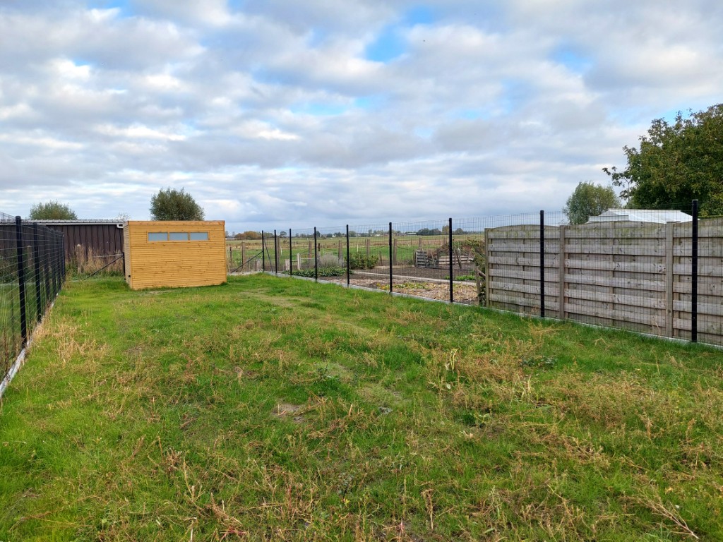 De lichtrijke leefruimte met geïntegreerde keuken en bureauhoek vormt het hart van de woning en biedt een eigentijdse, open sfeer. Via de grote raampartijen vloeien binnen en buiten naadloos in elkaar over, met zicht op de tuin en de achterliggende velden. Buiten is er een ruim terras aangelegd en grasperk, inclusief een tuinhuis dat extra bergruimte biedt.